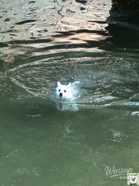 His swimming skills are getting better and better every day ㅎㅎ