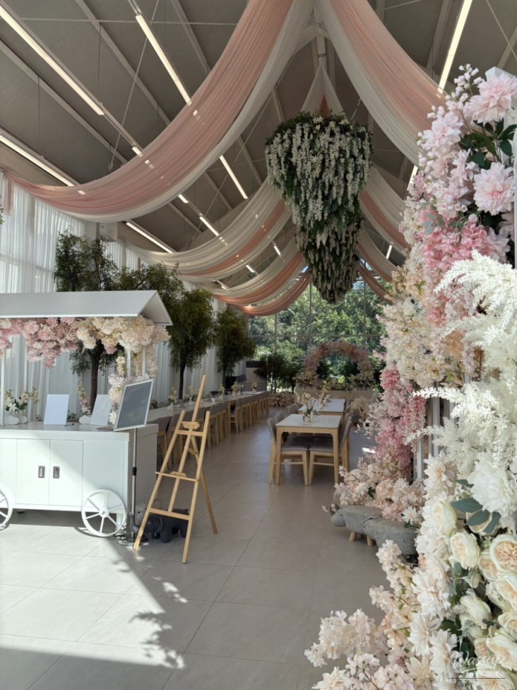 The separate wedding hall was beautiful, with sunlight streaming through the large windows. The emotional atmosphere made the hall even more eye-catching...