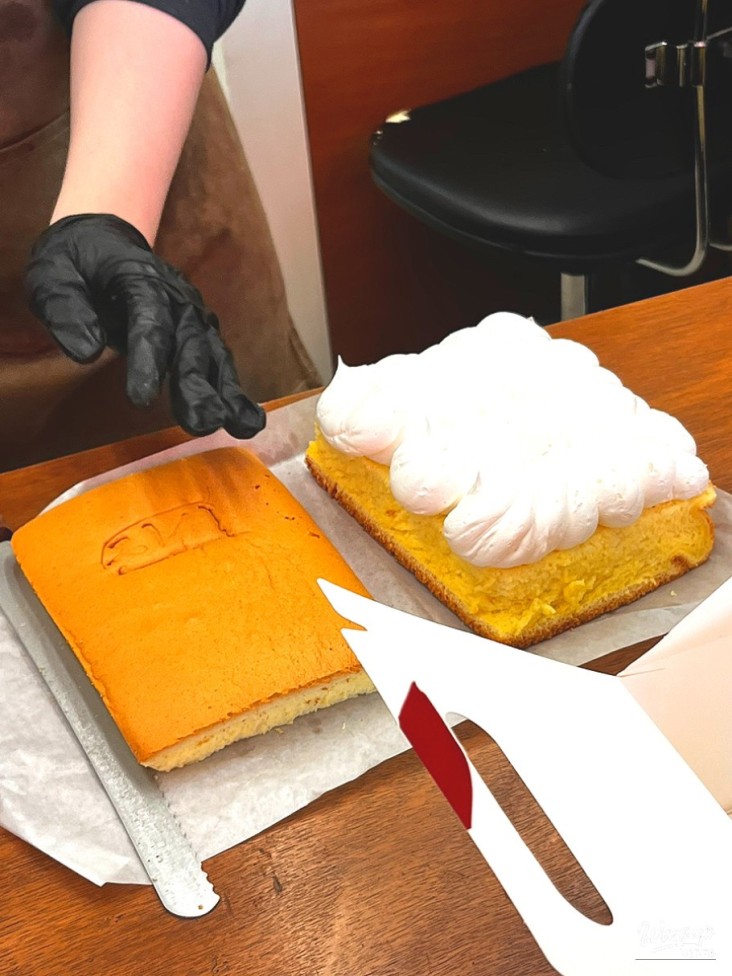 I ordered the Fresh Cream Castella, and it was amazing to watch the owner make it right in front of me. Wow... just looking at the amount of cream, you could tell he was putting in a lot of effort to generously spread it!