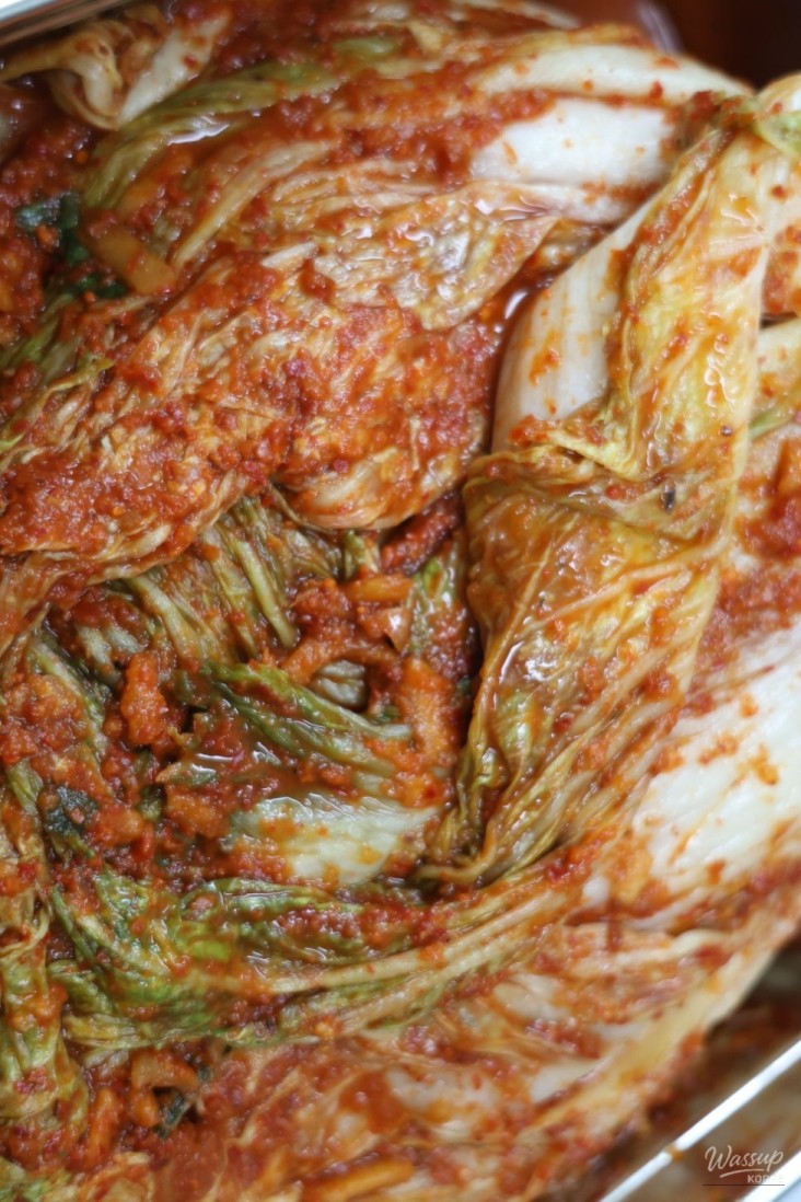 Unlike fresh kimchi that is only red on the outside, this kimchi was thoroughly seasoned all the way through, making it very appealing.