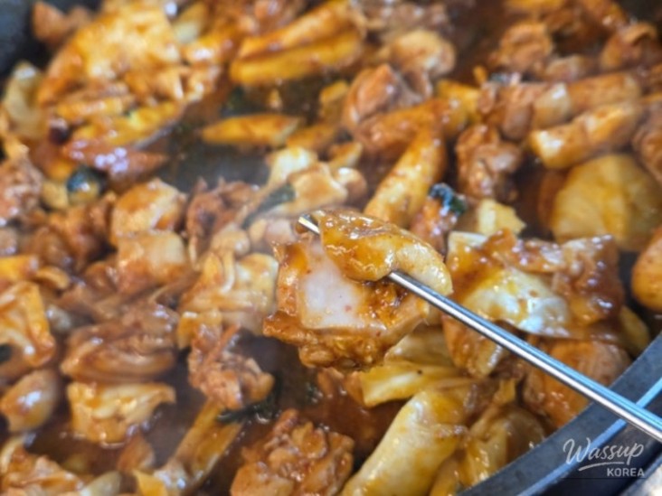 It's moderately spicy and has a savory, delicious Stir-fried Dakgalbi.