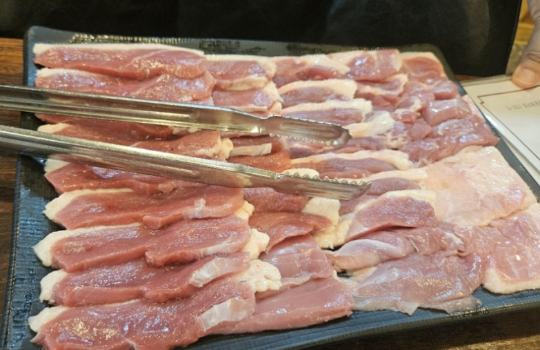 Here, unless you order the *baeksuk* (chicken soup), the default order is 500g of raw duck meat for grilling.