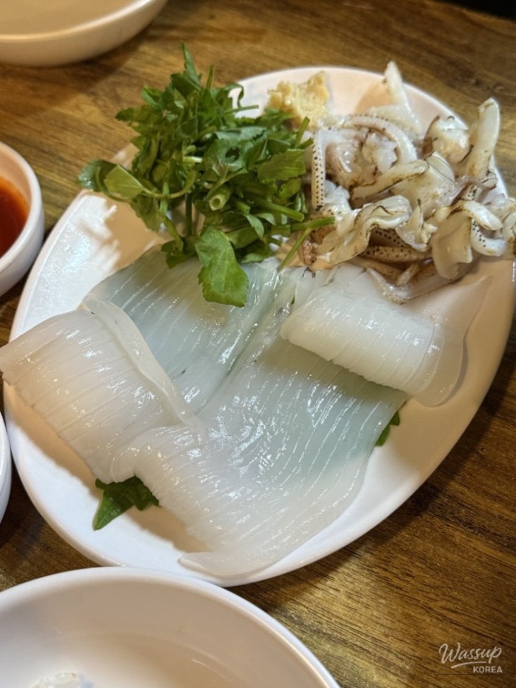 Salted Herring Roe Bibimbap, Live Halibut, Pollack Roe Tofu Stew, and Baby Clam Pancake