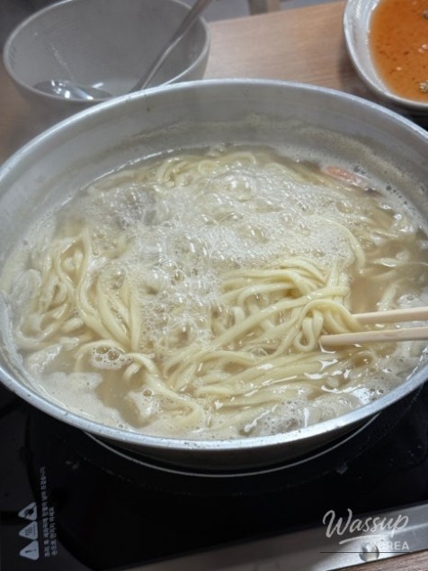 Finally, the Kalguksu review! As soon as I saw it, the broth looked so clear and clean that my mouth started watering. I took a sip... Wow! The broth was incredibly refreshing, clean, and yet so flavorful that it amazed me.