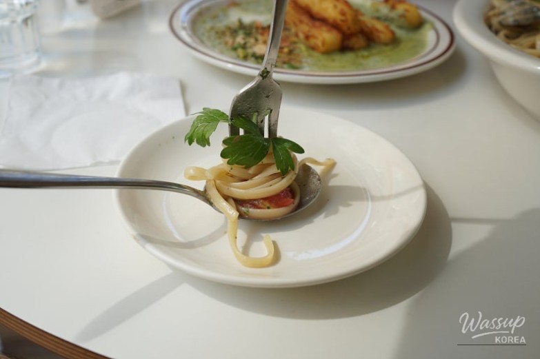 As befits a famous pasta restaurant in Jeonpo, the Cockle Vongole Linguine tasted great. It was a pasta where the savory taste and texture were felt harmoniously. The taste is most harmonious when you chew cockles, linguine noodles, and cherry tomatoes together. The pasta was so delicious that many customers were visiting from lunchtime.