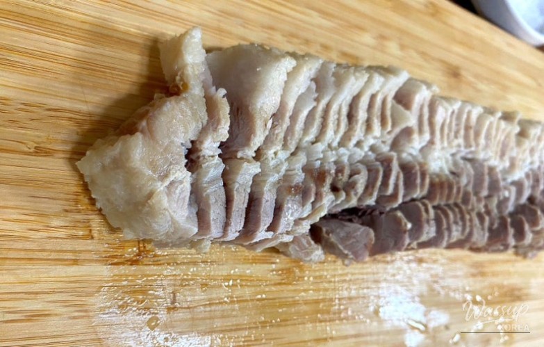 The Suyuk (boiled pork slices) are sliced in front of the customers upon ordering,