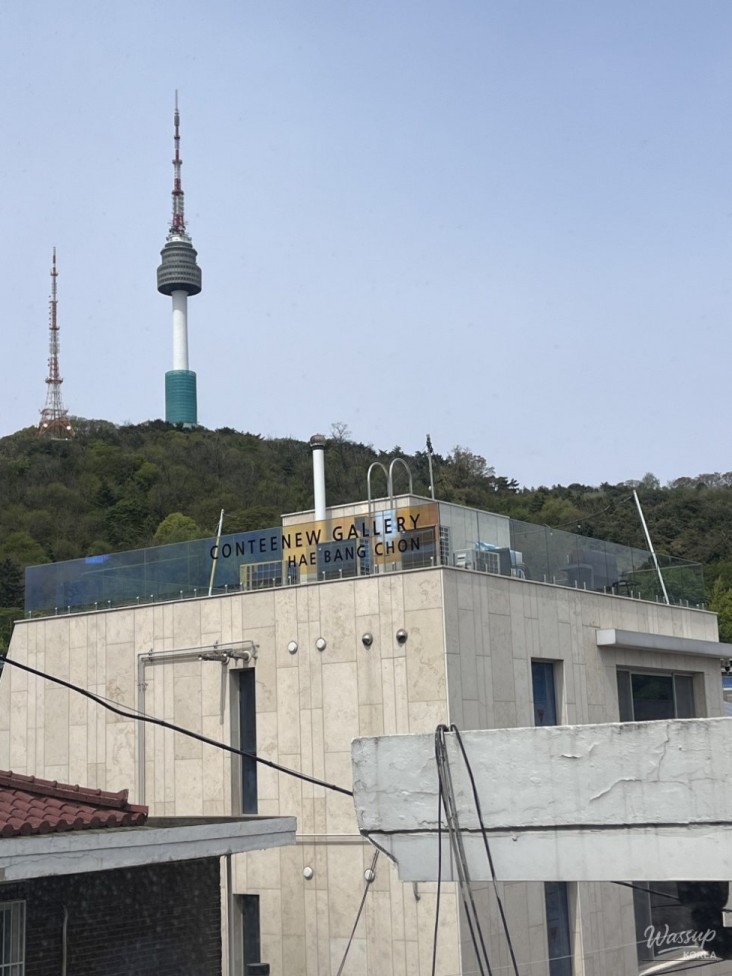 We chatted while looking at Namsan Mountain and took a picture while waiting for the food.