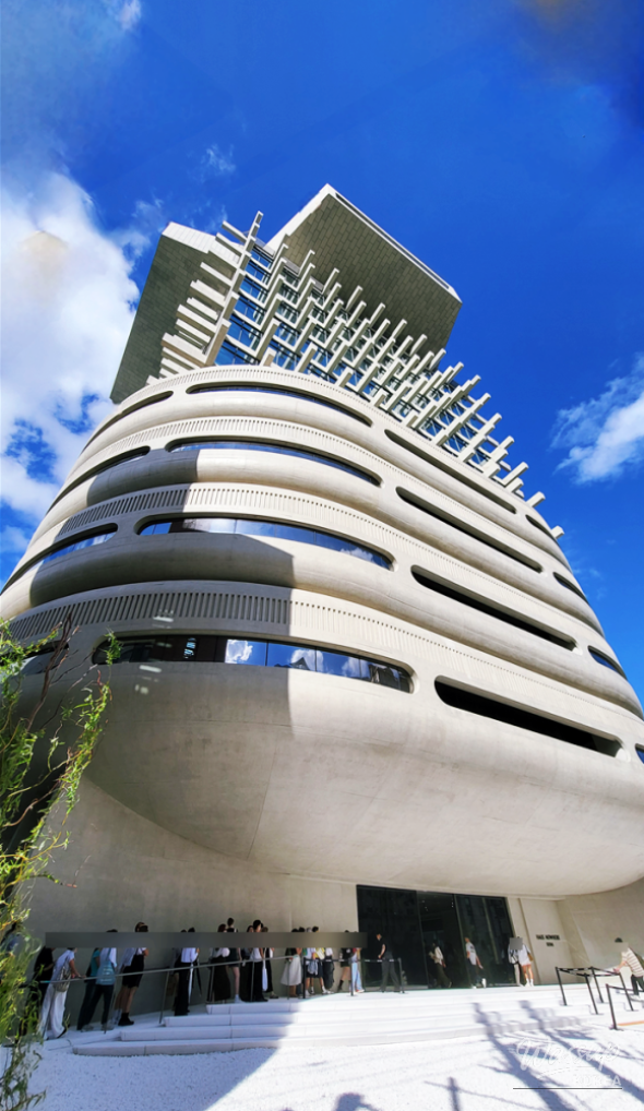 The exterior clearly showcases Gentle Monster's identity with its experimental shape.