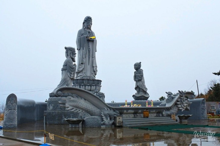 The Wisdom Avalokiteśvara Bodhisattva, which is visible from afar, seems to be a famous landmark representing Heuheuam Temple.